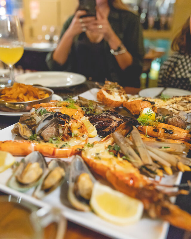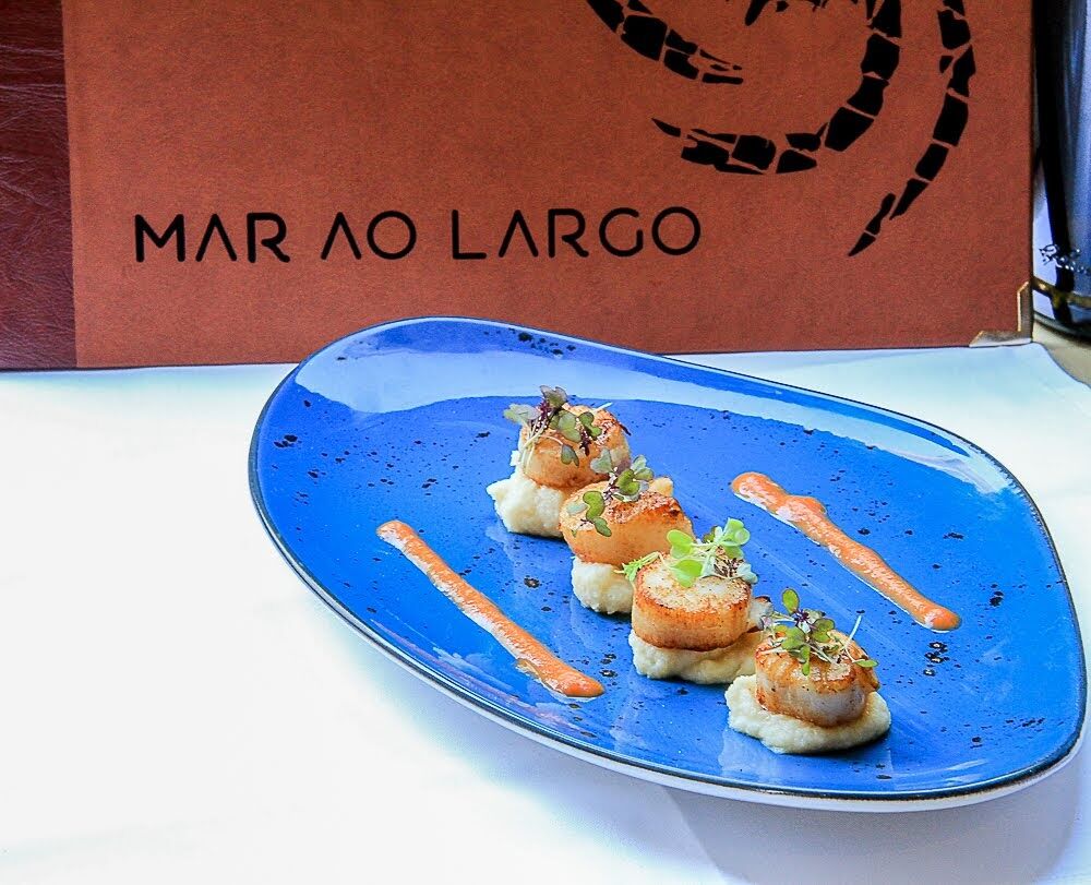 Elegante e descontraído sem deixar de ser português, a carta do Mar ao largo delicia-nos com pratos cheios de cor como já nos habituou o Chef. Entre Mariscos vivos e peixe fresco a nossa banca e aquário delícia todos os que nos visitam.Peixe grelhado, escalado e servido com um toque de modernidade. Todos os dias a montra de peixes e mariscos é recheada de produto fresco
